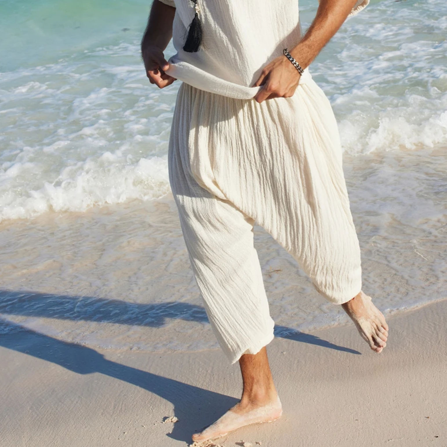 • Mens Linen Minimalist Holiday Plain Casual Pants