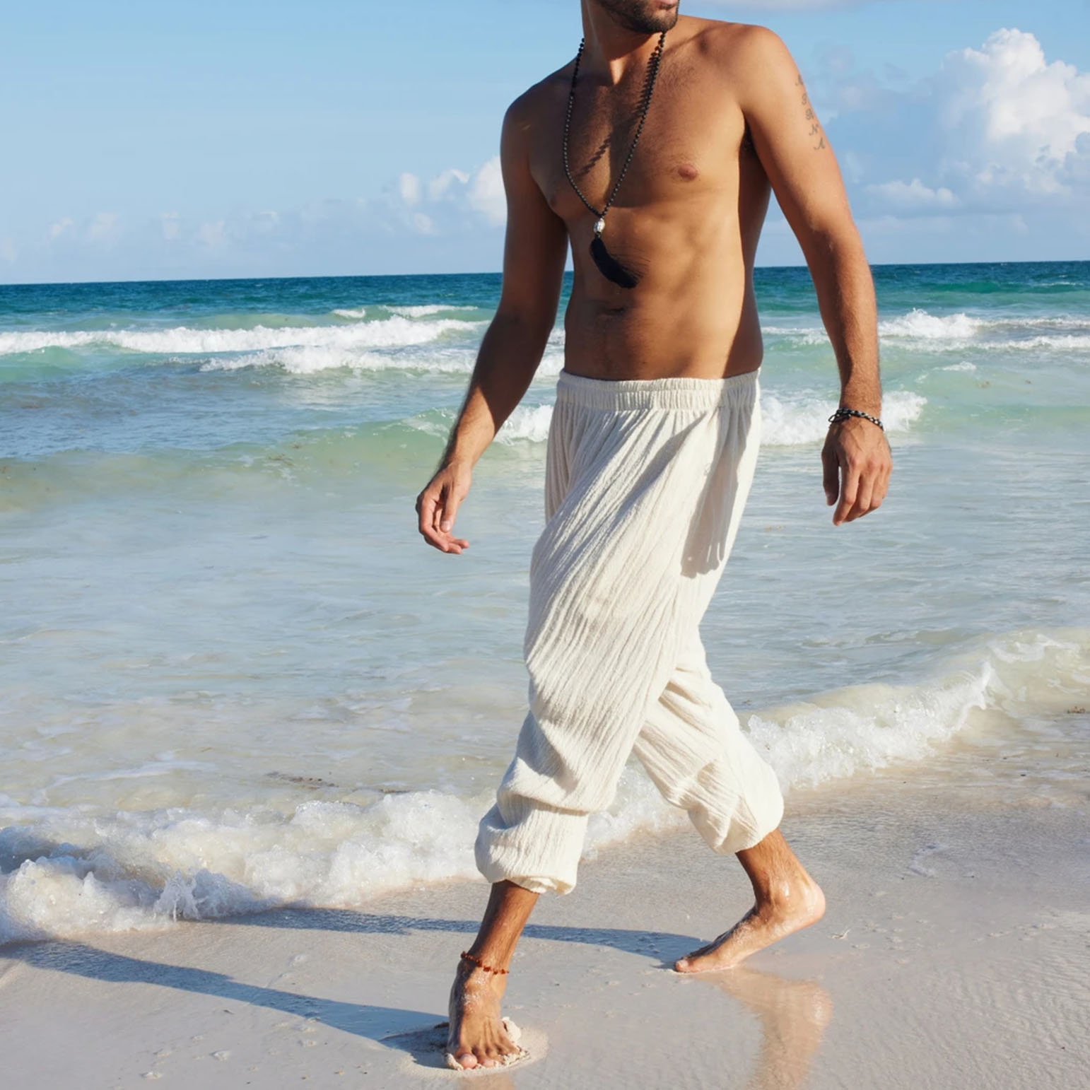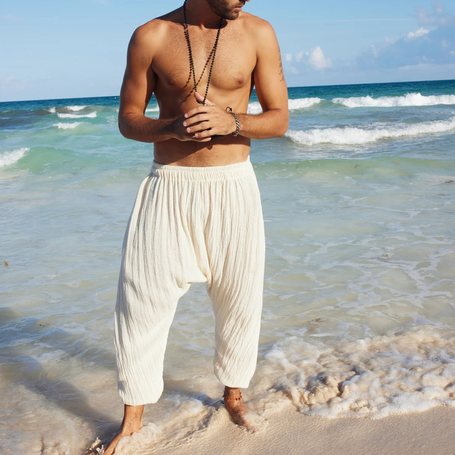 Mens Linen Minimalist Holiday Plain Casual Pants