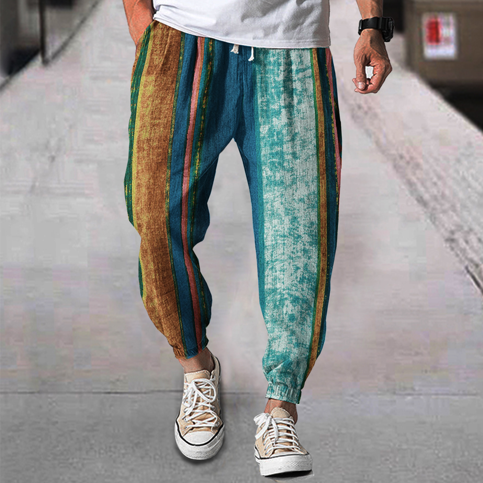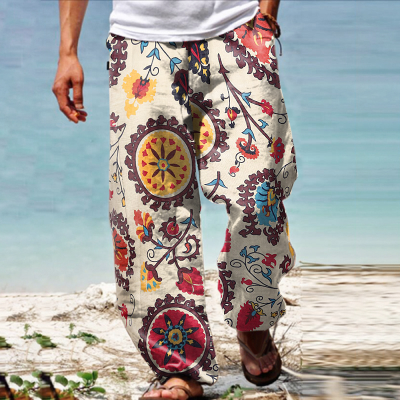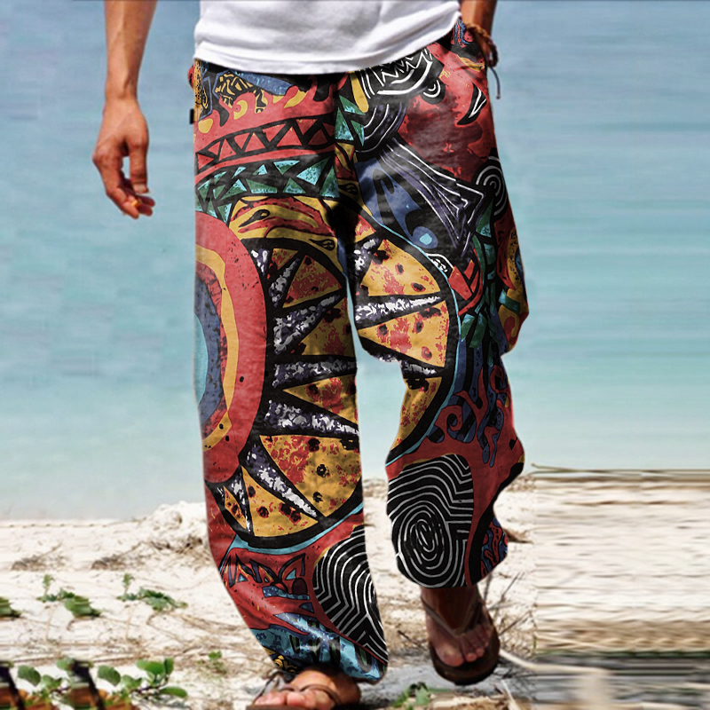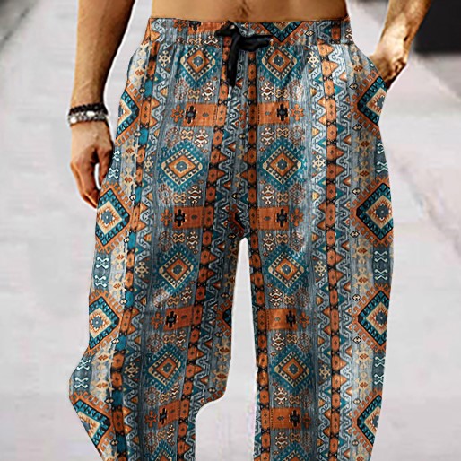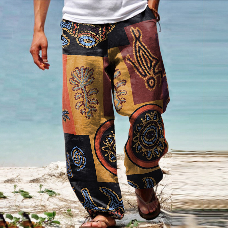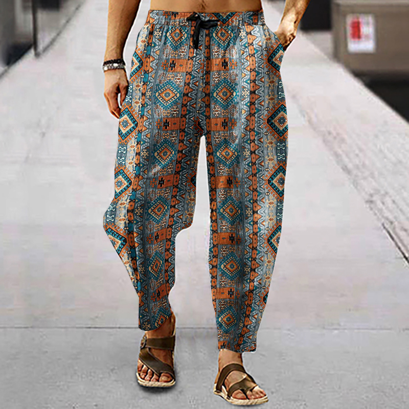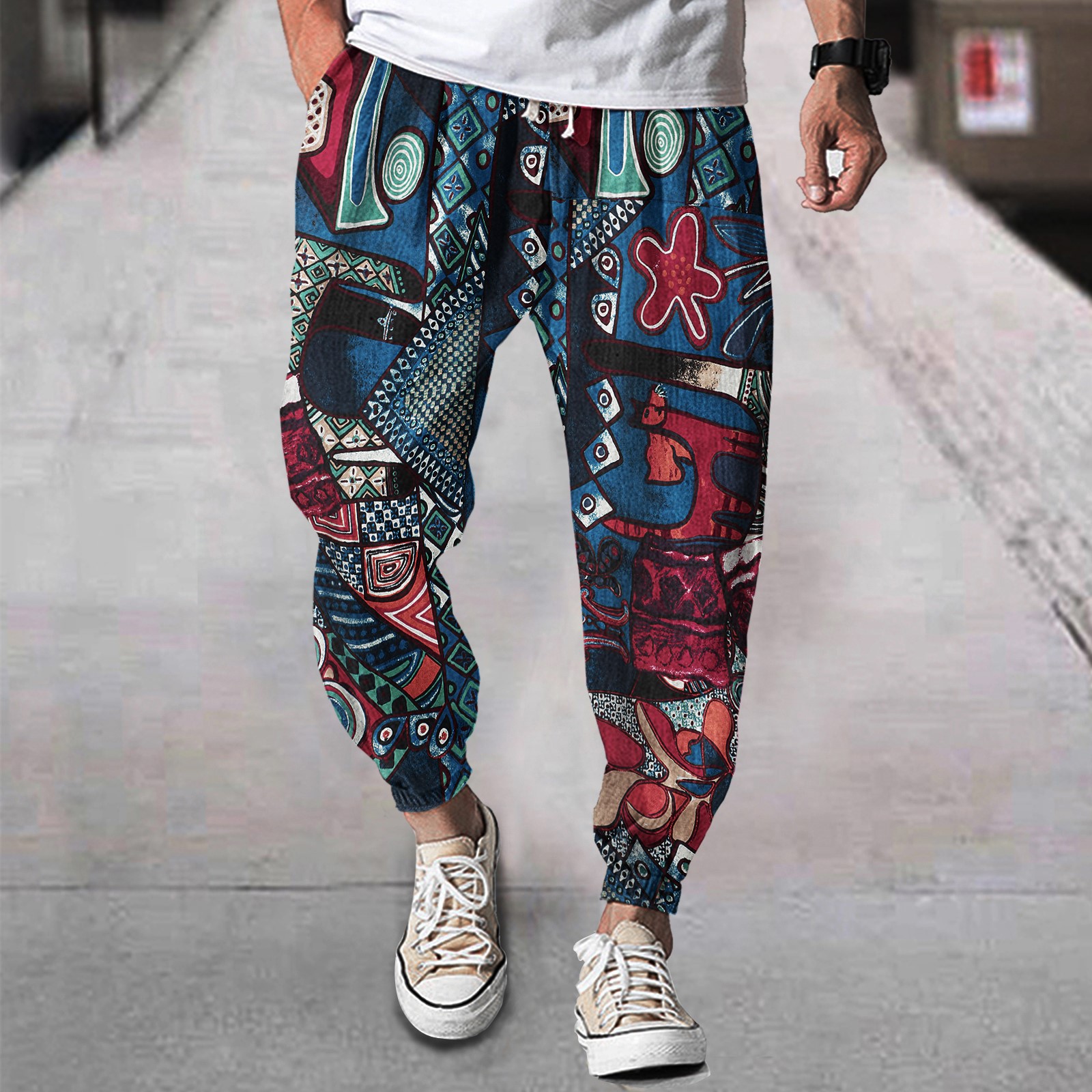 Men's Linen Western Ethnic Irregular Print Loose Casual Pencil Pants