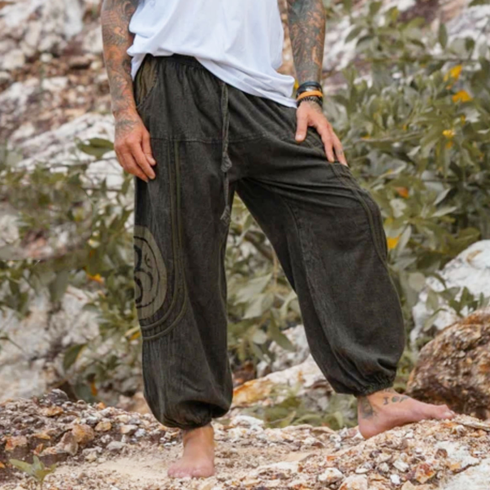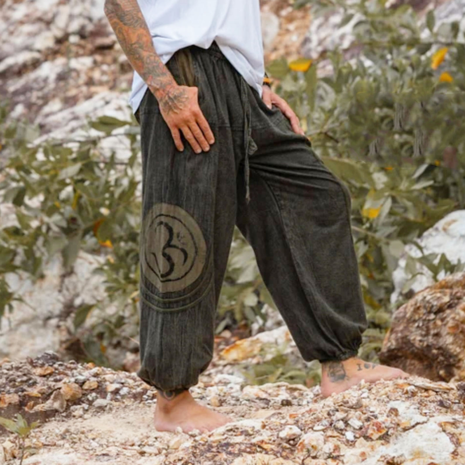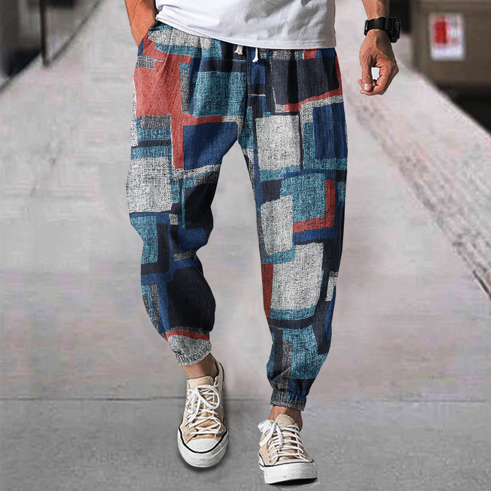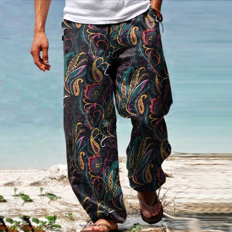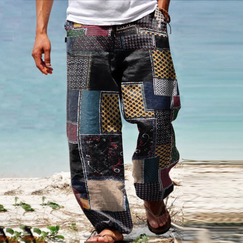 Men's Linen Western Ethnic Irregular Print Loose Casual Pencil Pants