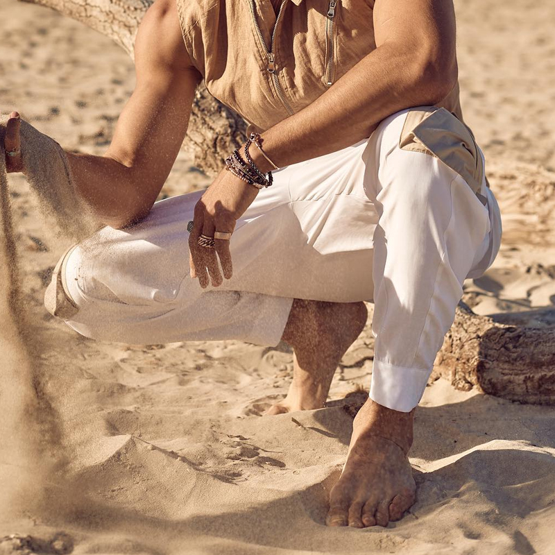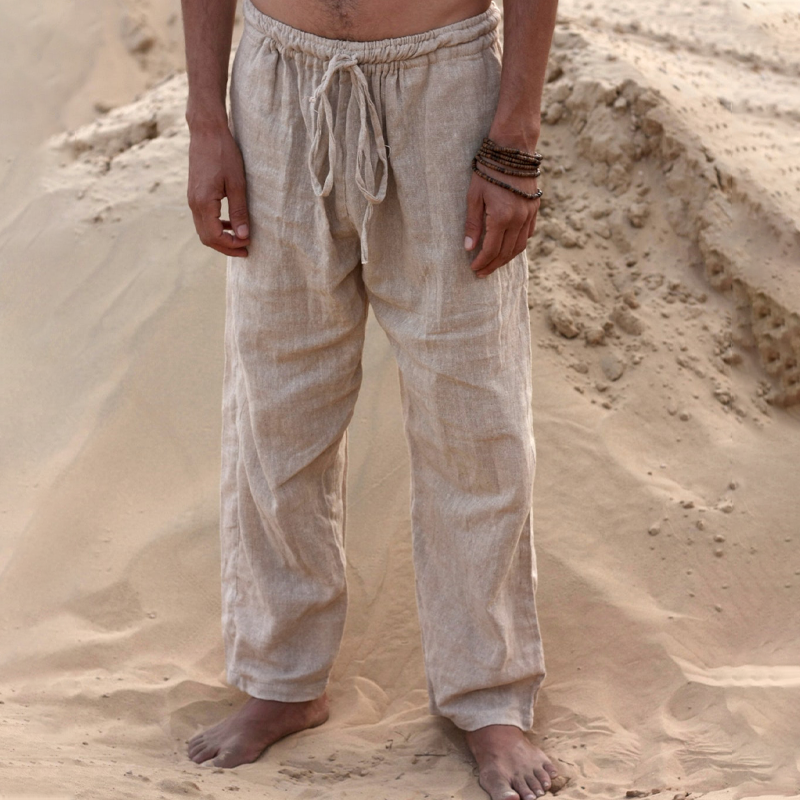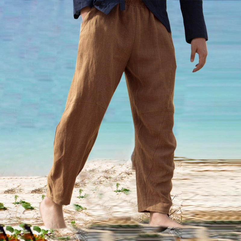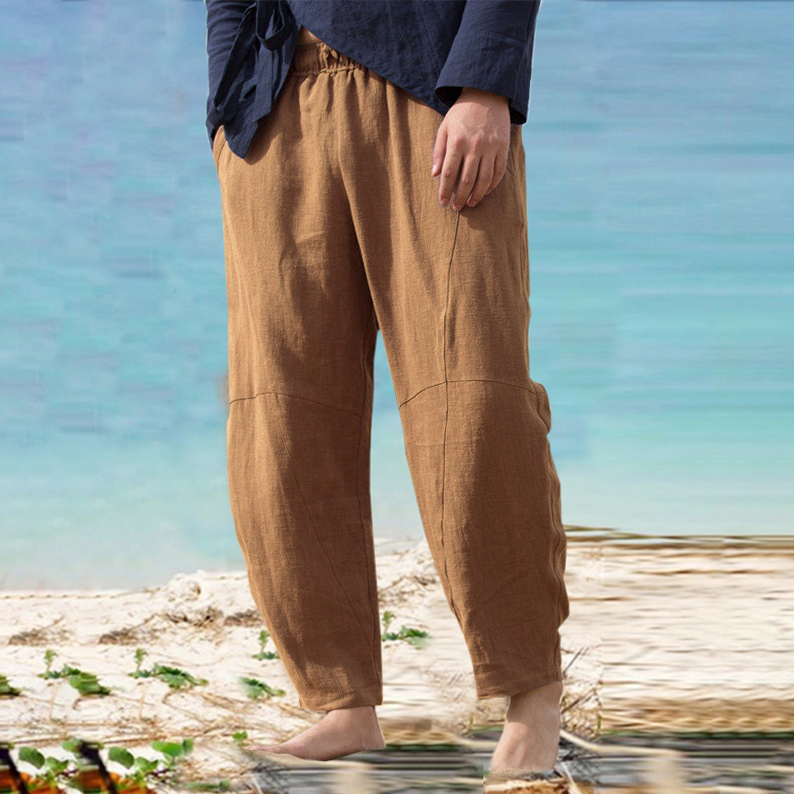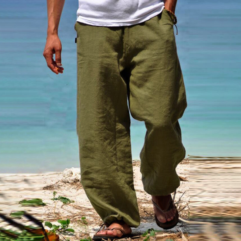 Mens Linen Minimalist Holiday Plain Casual Pants