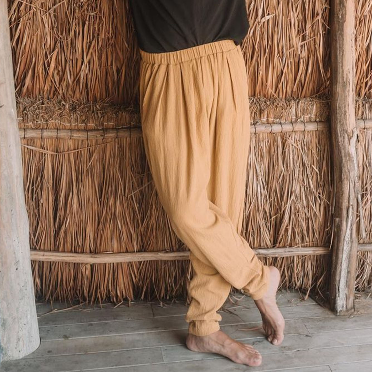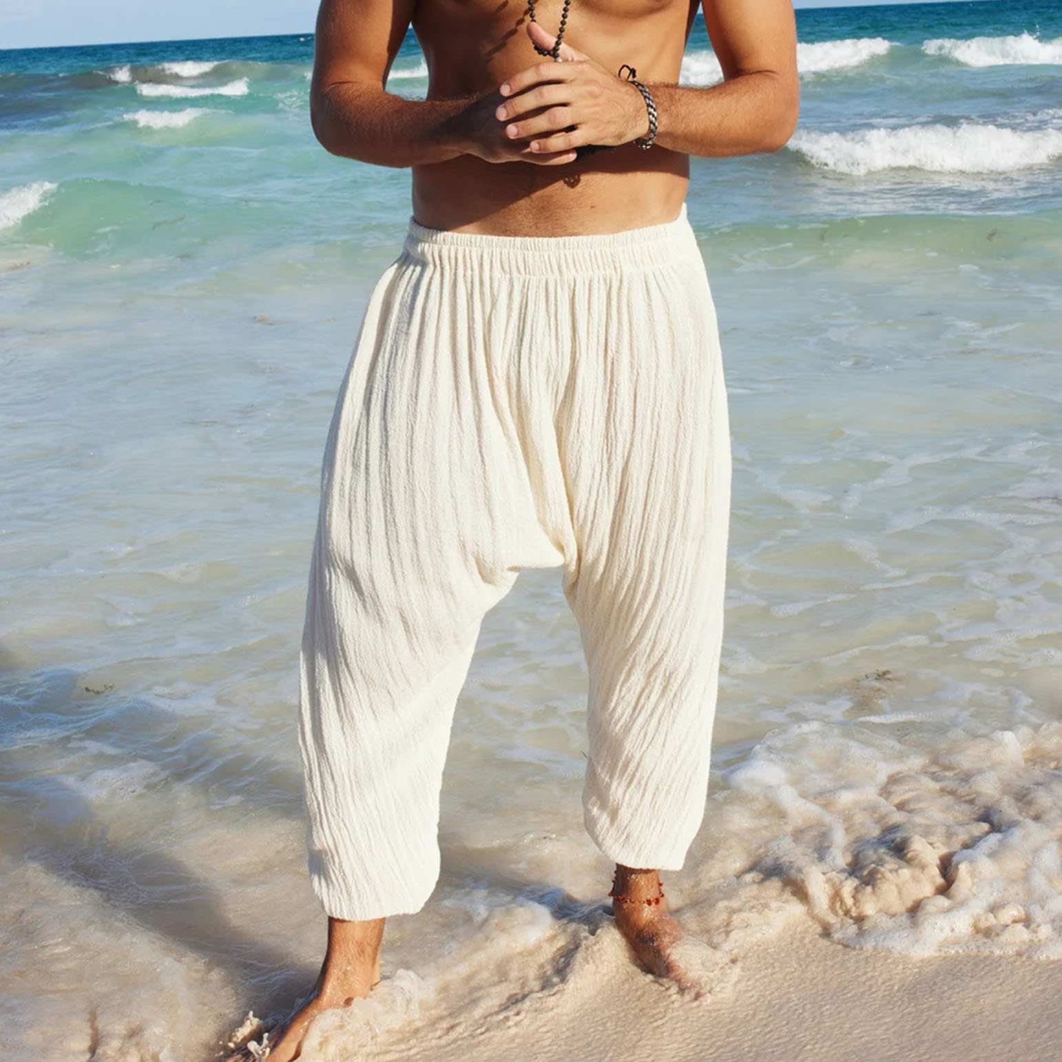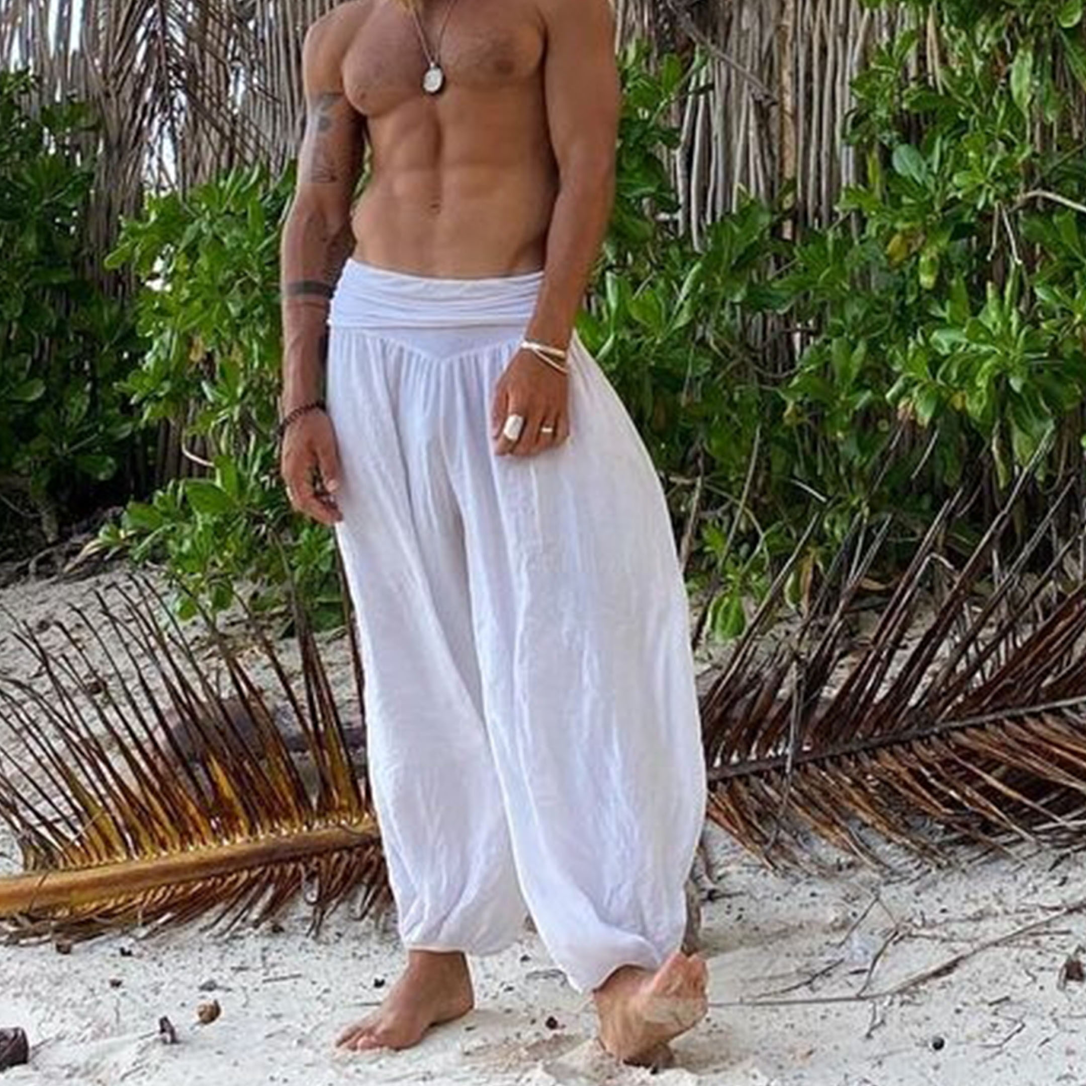 Mens Linen Minimalist Romantic Holiday Harem Pants