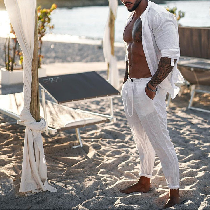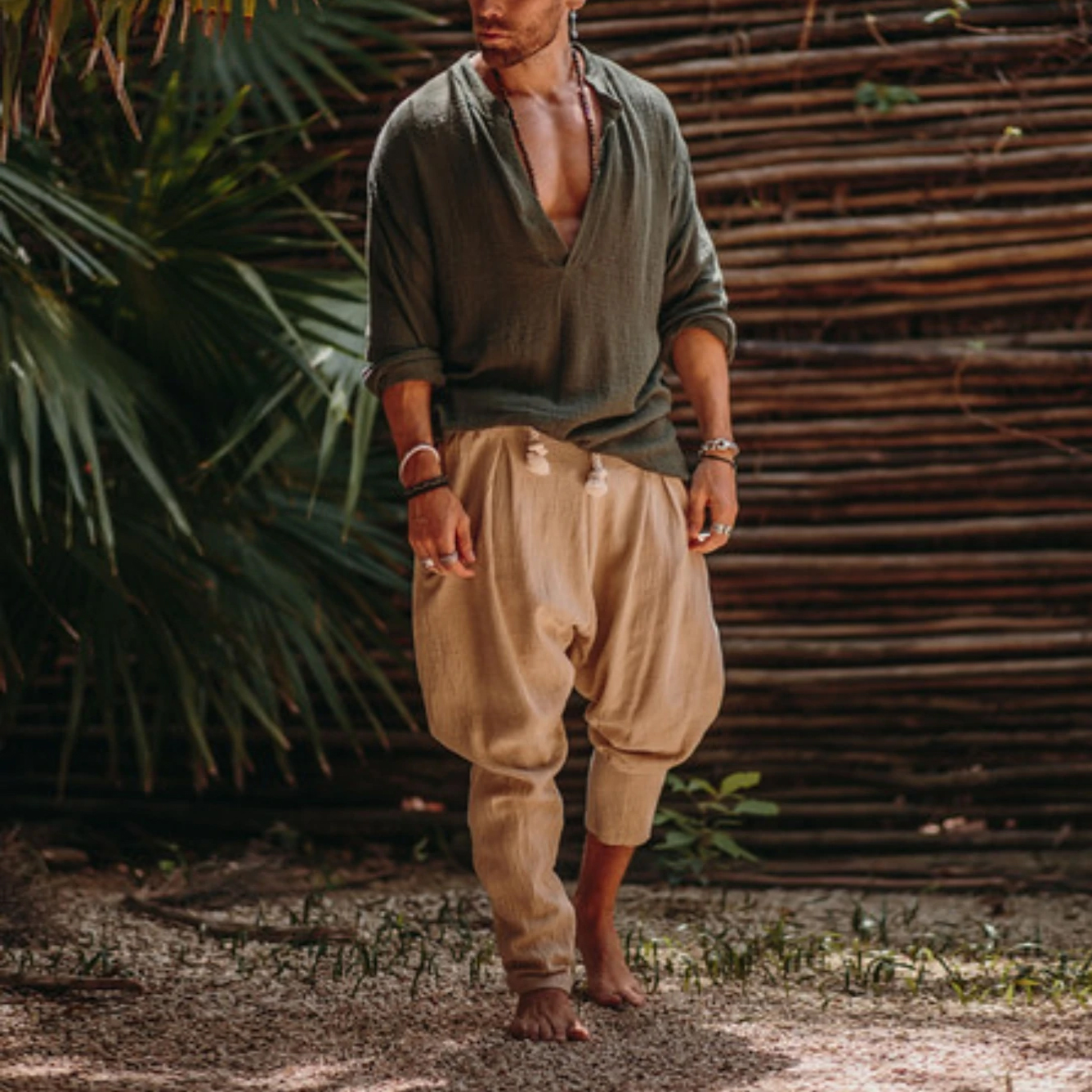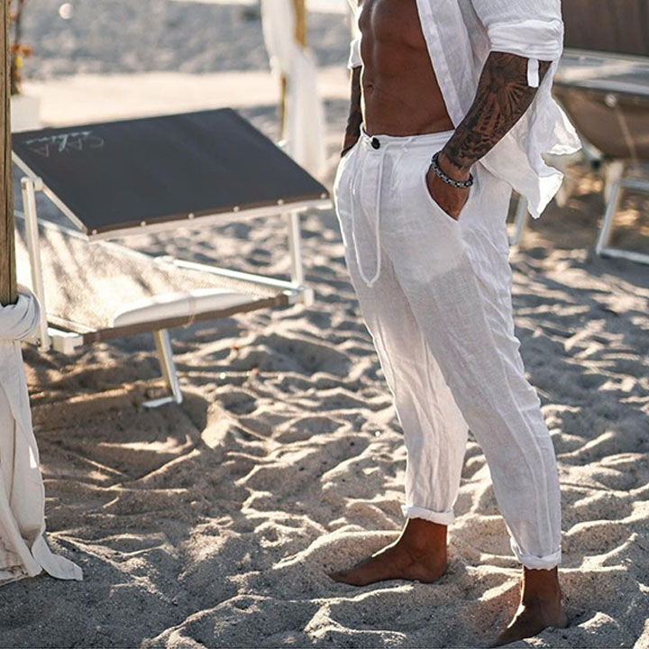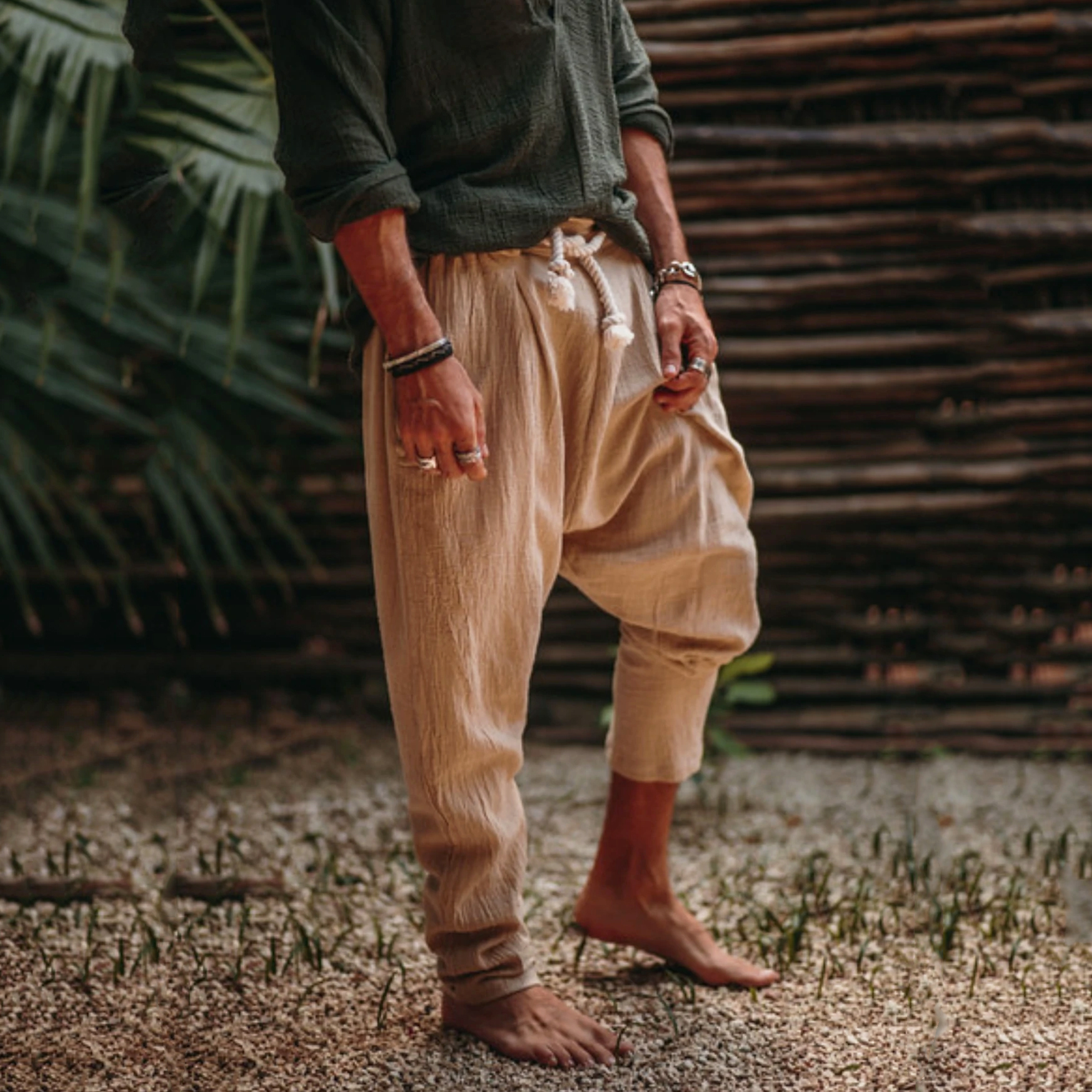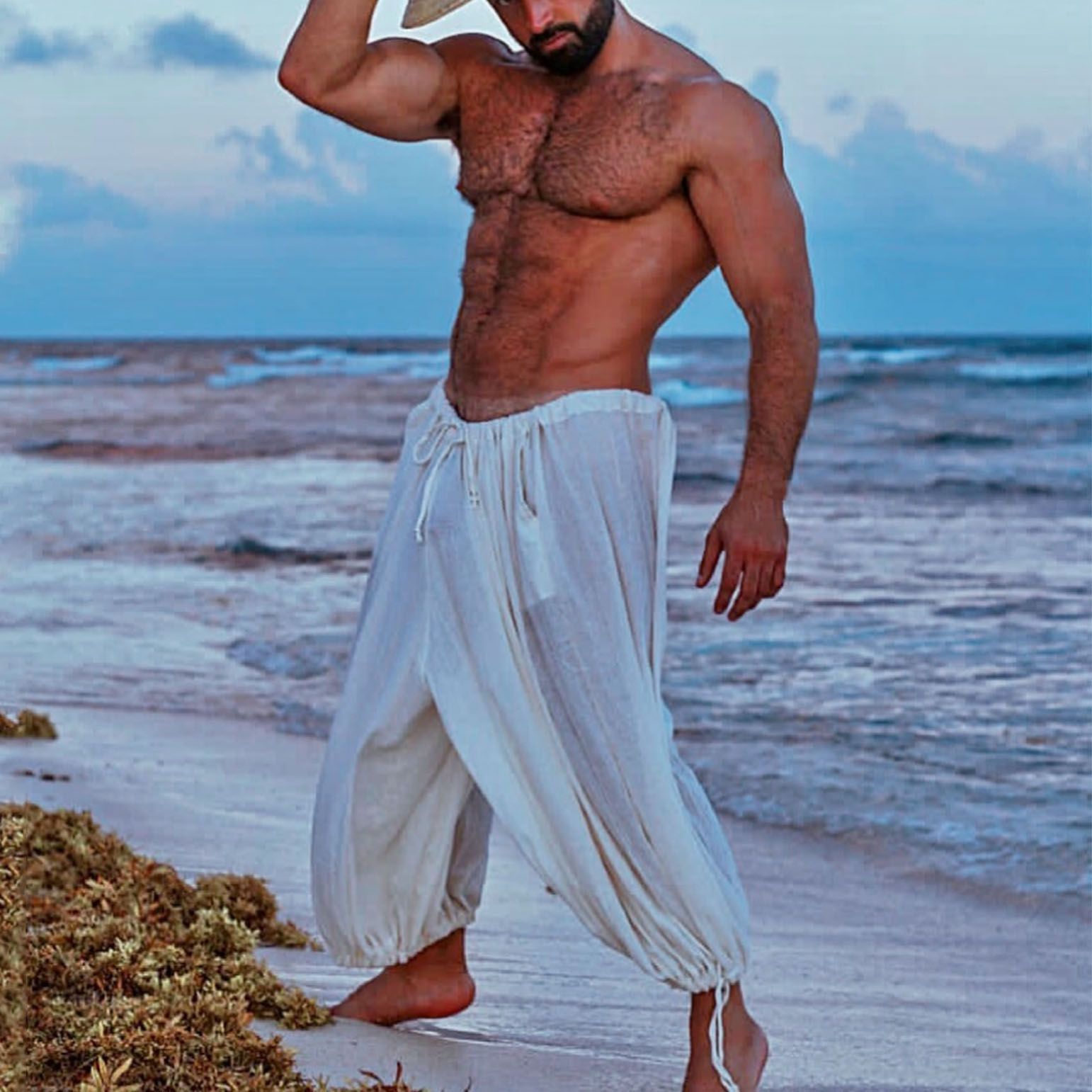 Mens Linen Minimalist Romantic Holiday Harem Pants