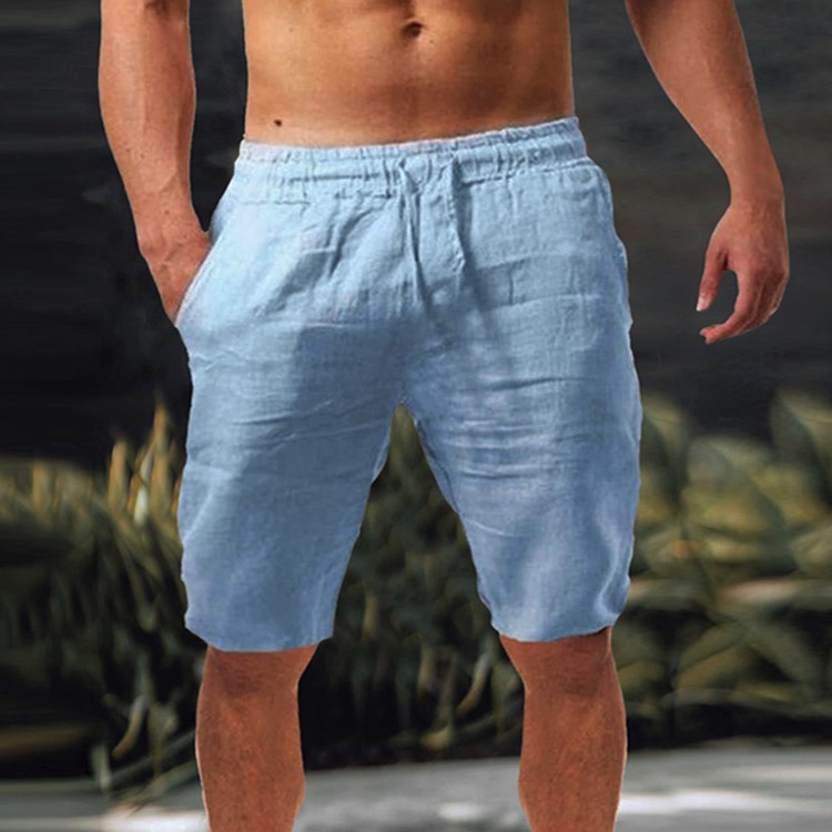 Men's Summer Loose Lace-Up Five-Point Pants Solid Color Linen Shorts