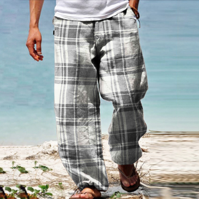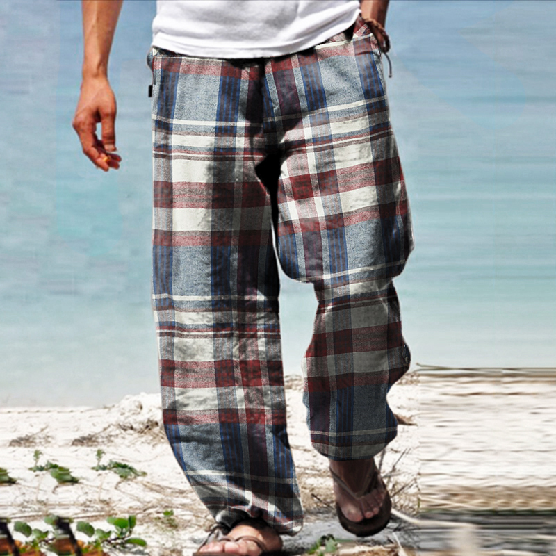 Men's Classic Plaid Print Double Pocket Stretch Loose Pants