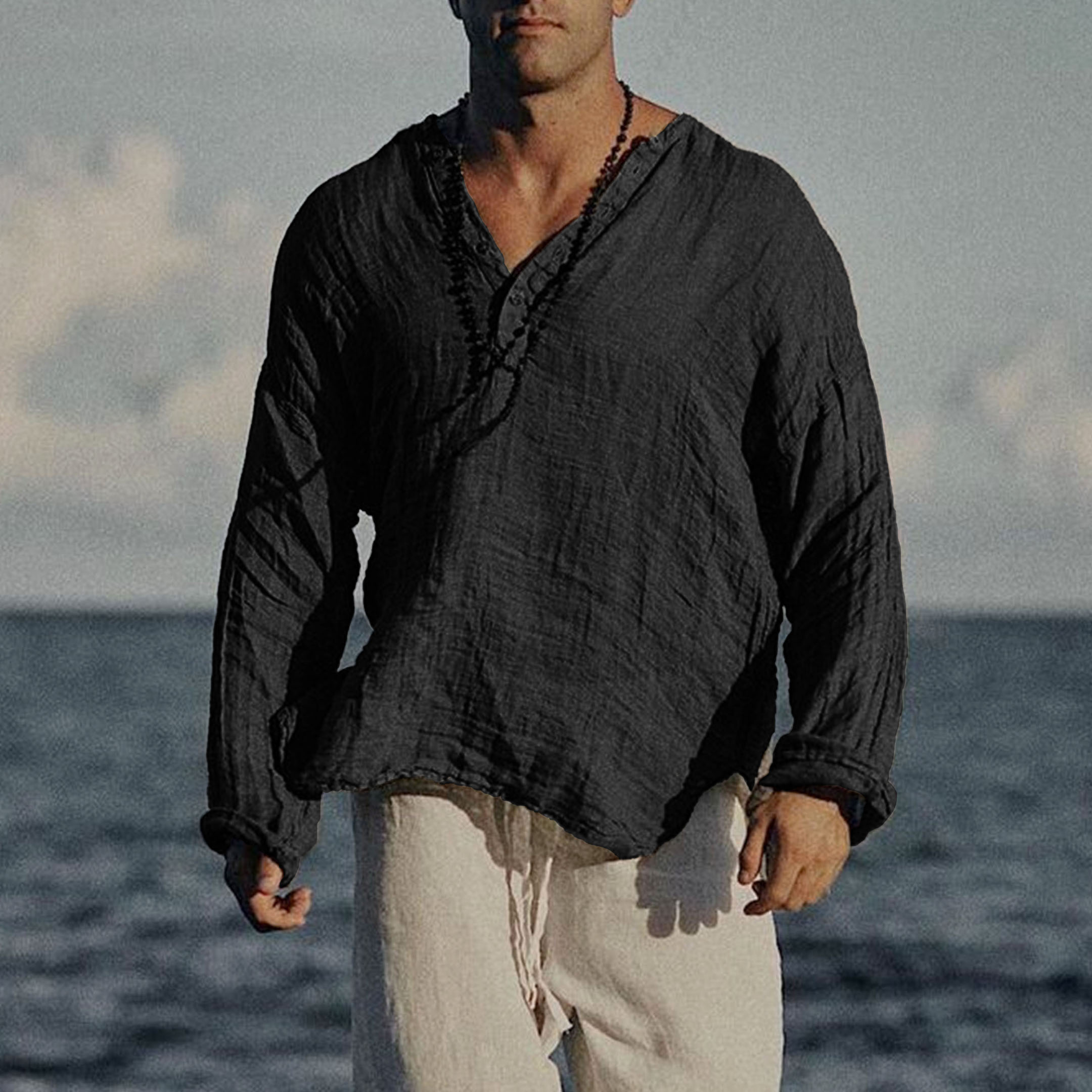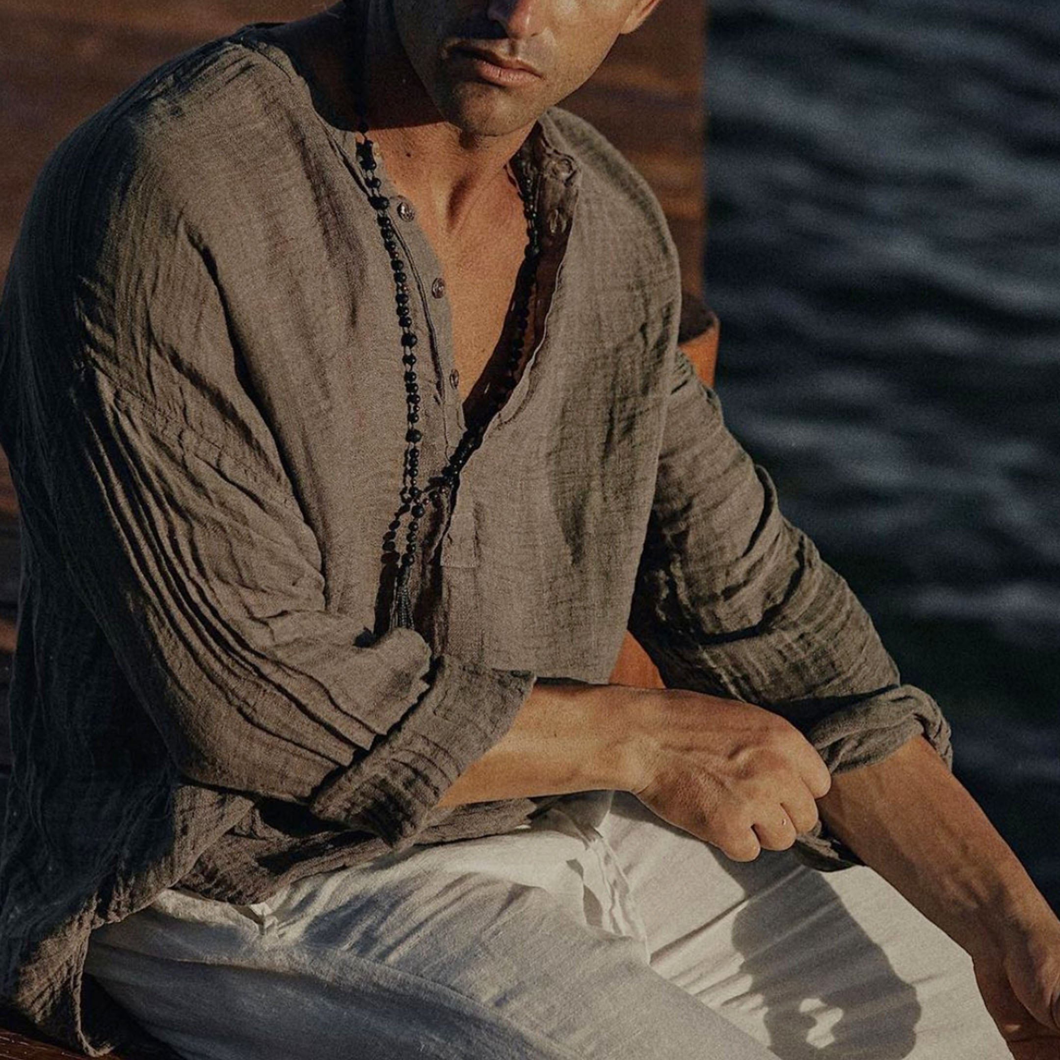 • Men's Linen Half-open Collar Long-sleeved Shirt