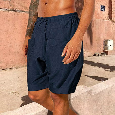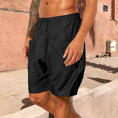 • Men's Boho Linen Drawstring Loose With Pockets Casual Shorts