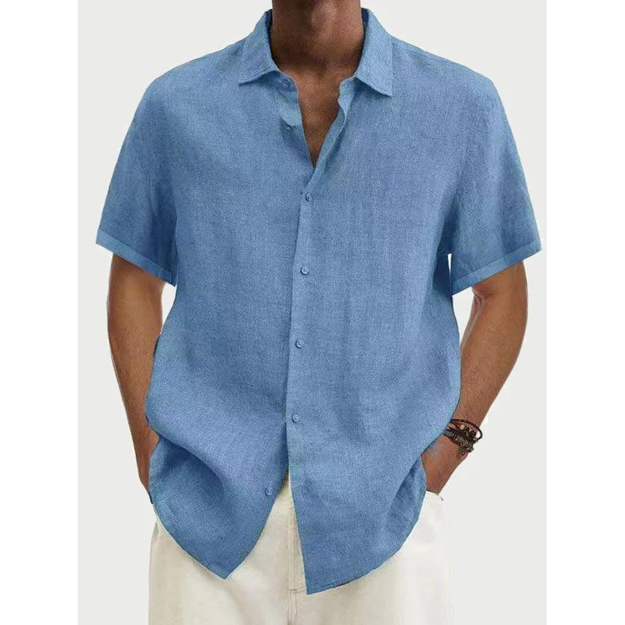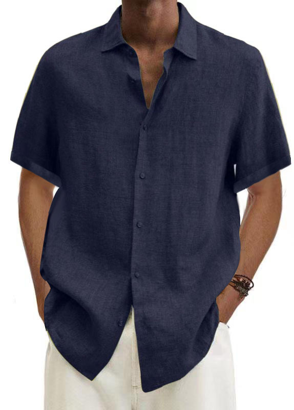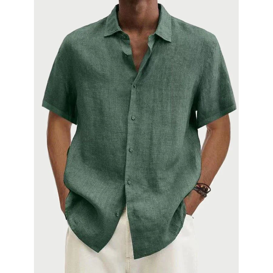 • Men's Casual Short Sleeve Cotton Linen Shirt