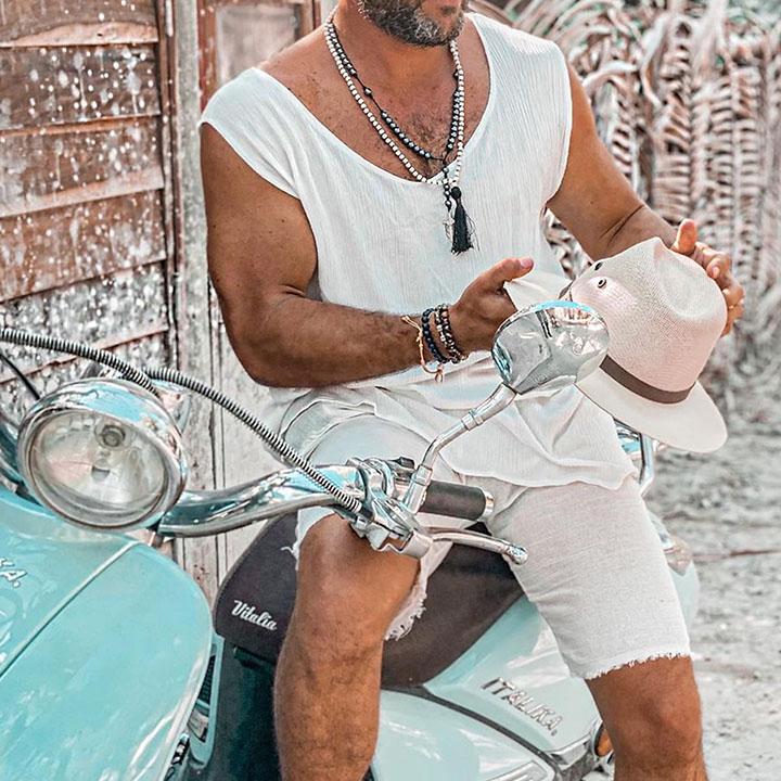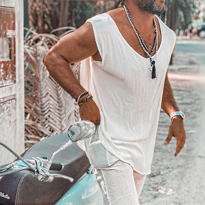 Men's Loose Beach Style Casual Cotton Linen Drawstring Shirt T-Shirt