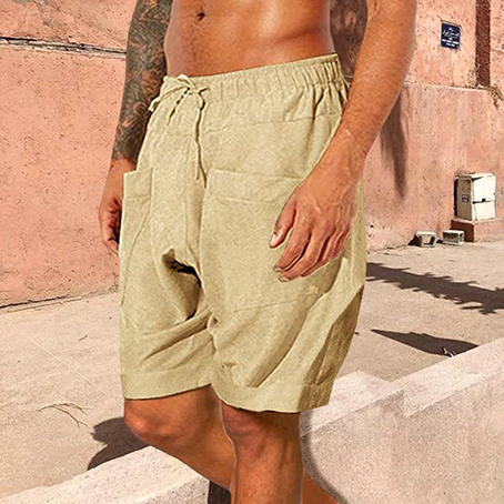 Men's Boho Linen Drawstring Loose With Pockets Casual Shorts