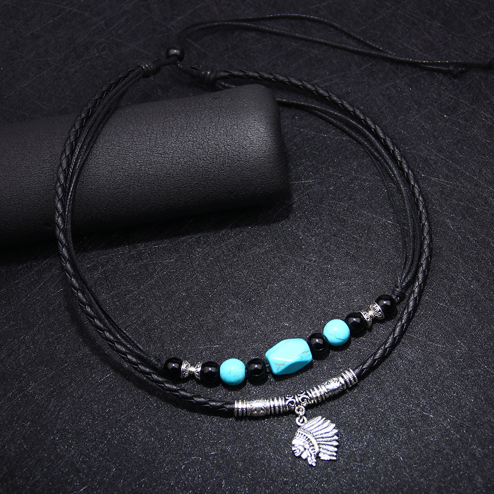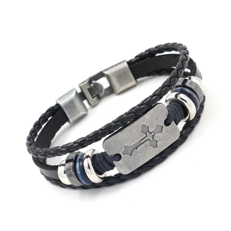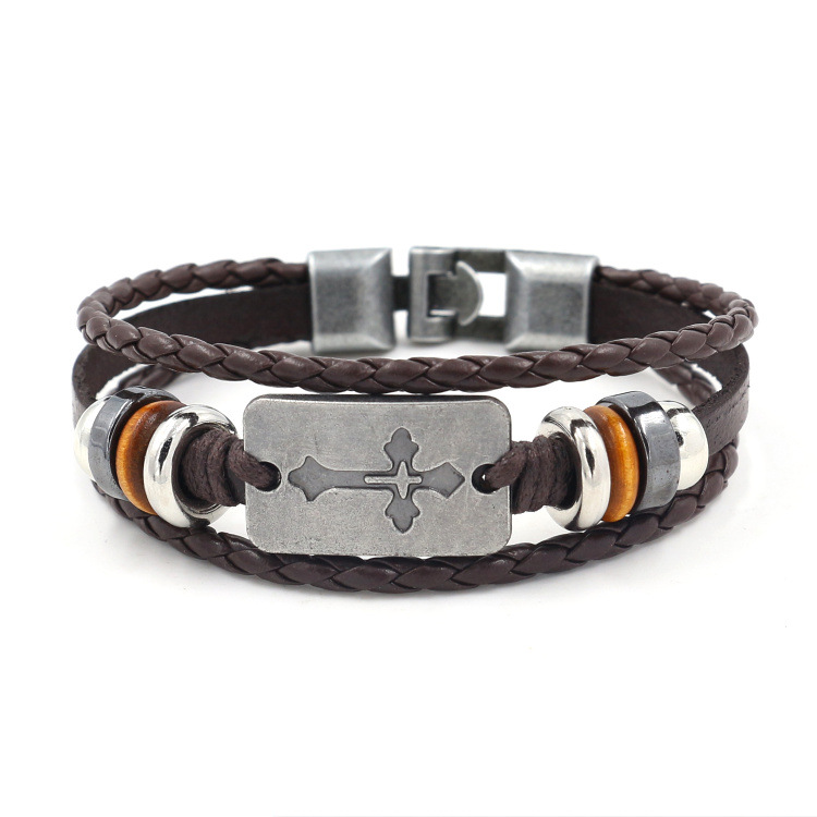 Religious Ethnic Style Leather Cord Braided Cross Necklace