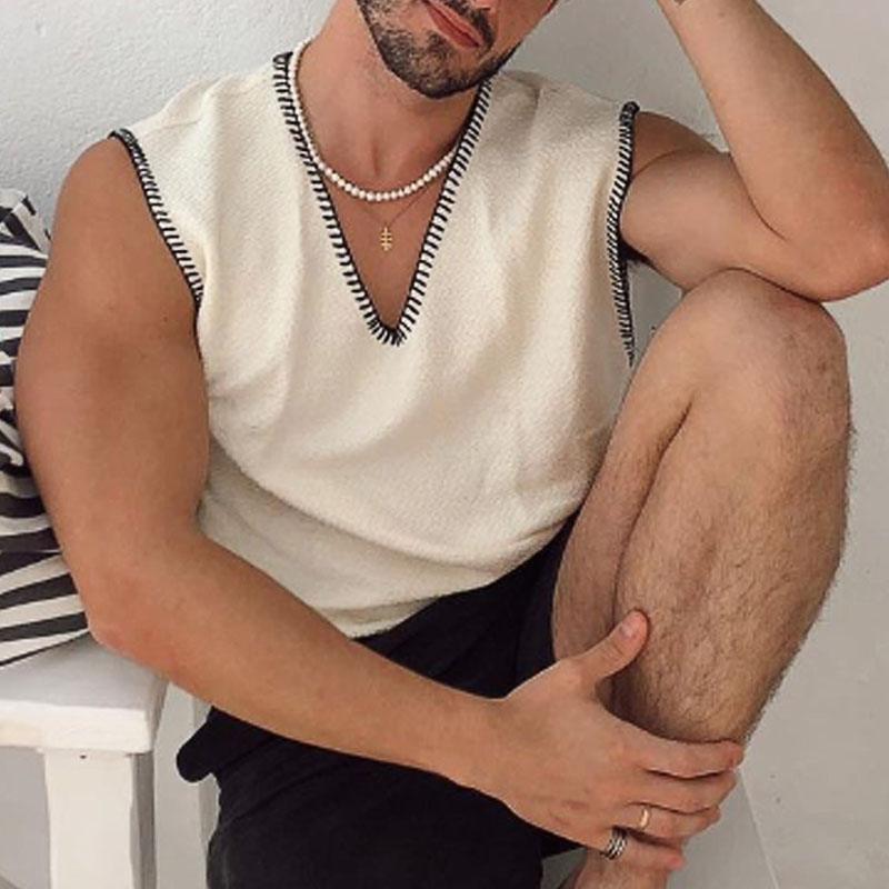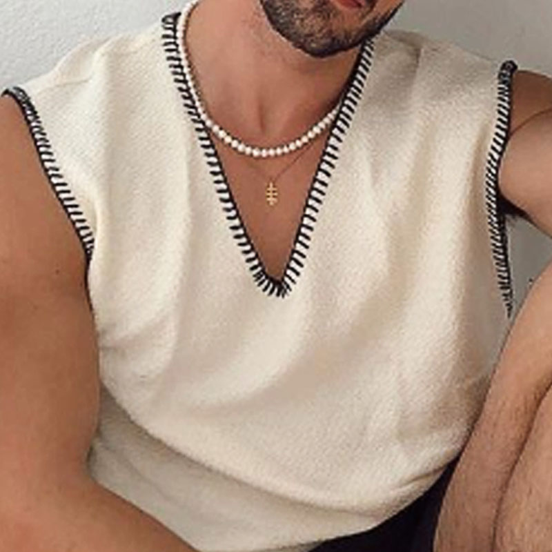 Men's Summer V-Neck Solid Color Breathable T-Shirt Seaside Beach Oversize Short Surf Sleeve T-Shirt