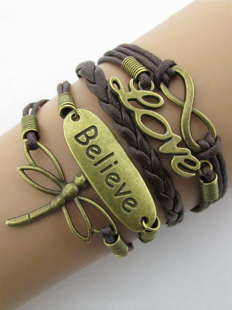 Believe Dragonfly Love 8 Word Multi-strand Wax Rope Braided Bracelet